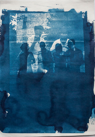 They consist of glas-negatives and digital reproductions printed as cyanotypes on ancient maps, aproximately the age of the pictures themselves, or drawing paper.